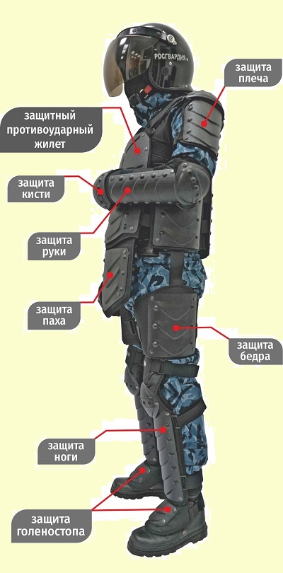 - Противоударный жилет, состоит из 5-ти соединённых друг с другом щитков:
